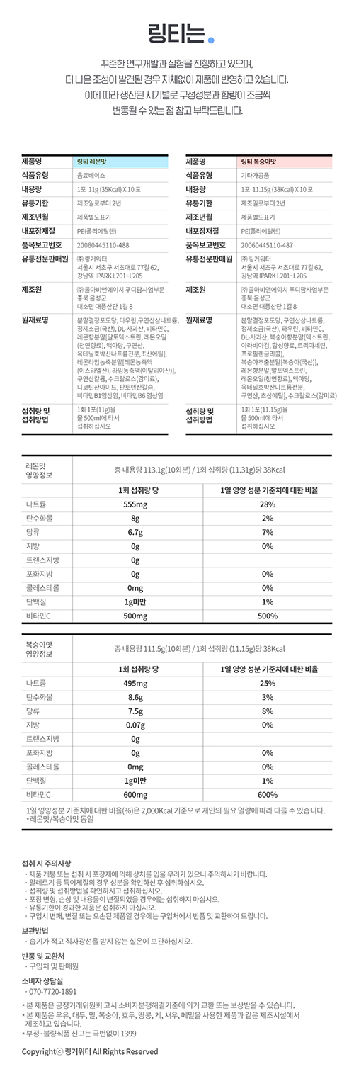한때 마시는 링거라는 광고 카피로 식약처에서 허위 과대 광고 업체로 행정처분되었다는 뉴스도 있었습니다. 이유는 '식품 등의 표시·광고에 관한 법률' 위반입니다. 자세히 보면 링티 제품에 문제는 유통업체에서 잘못 사용한 문구입니다.
